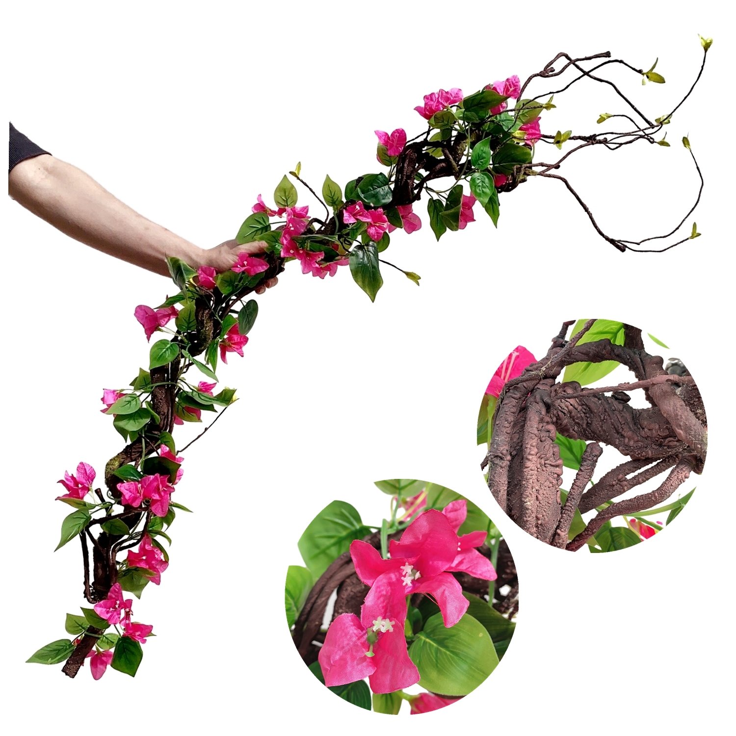 - Real-looking: These vines are bendable, twistable life-like vines with a natural feel and look and can be twisted together with vines of different sizes to create realistic decor. The bougainvillea is long and soft, full of blooms and foliage. This vine is perfect to add color to any arrangement, natural fresh color, poisonless and harmless.