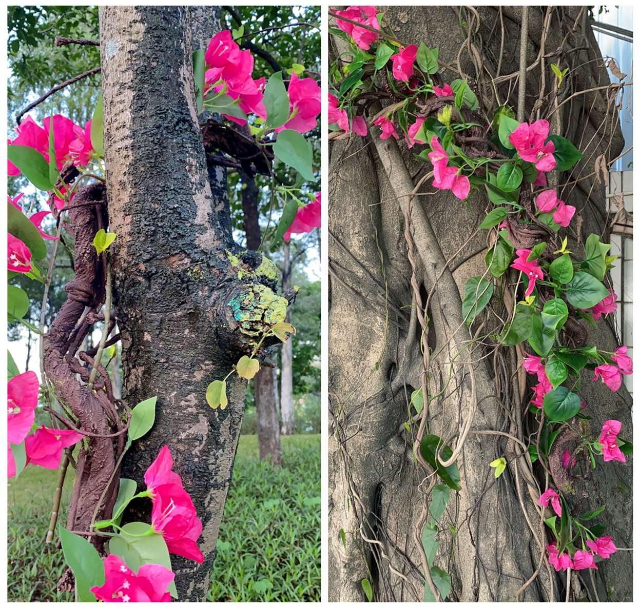 - No maintenance: This tree flower vine is spectacular in various location like indoor or outdoor. All finishes are non-toxic, safe and environment friendly. UV protected, not afraid of high or low temperature, waterproof, not easy to rot.