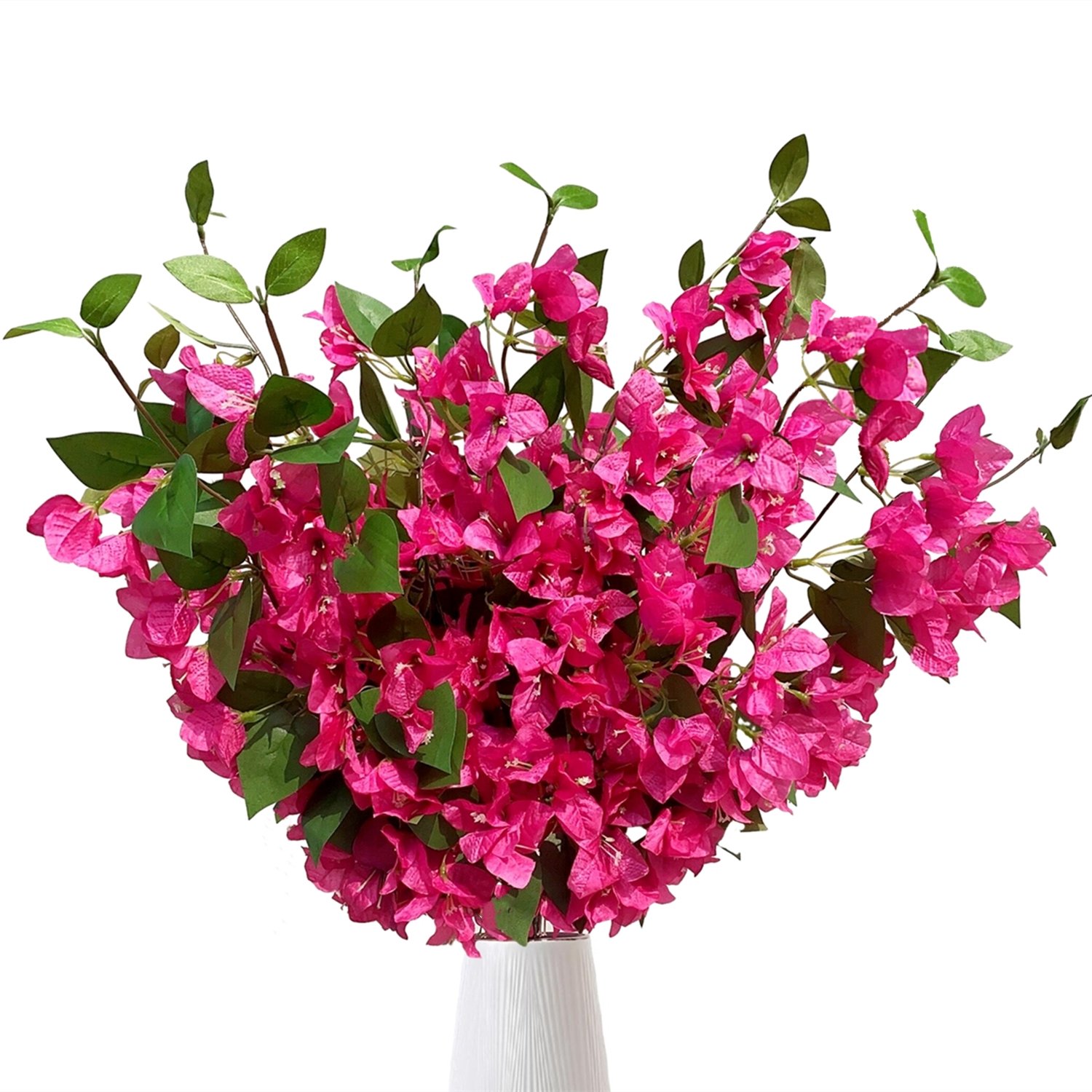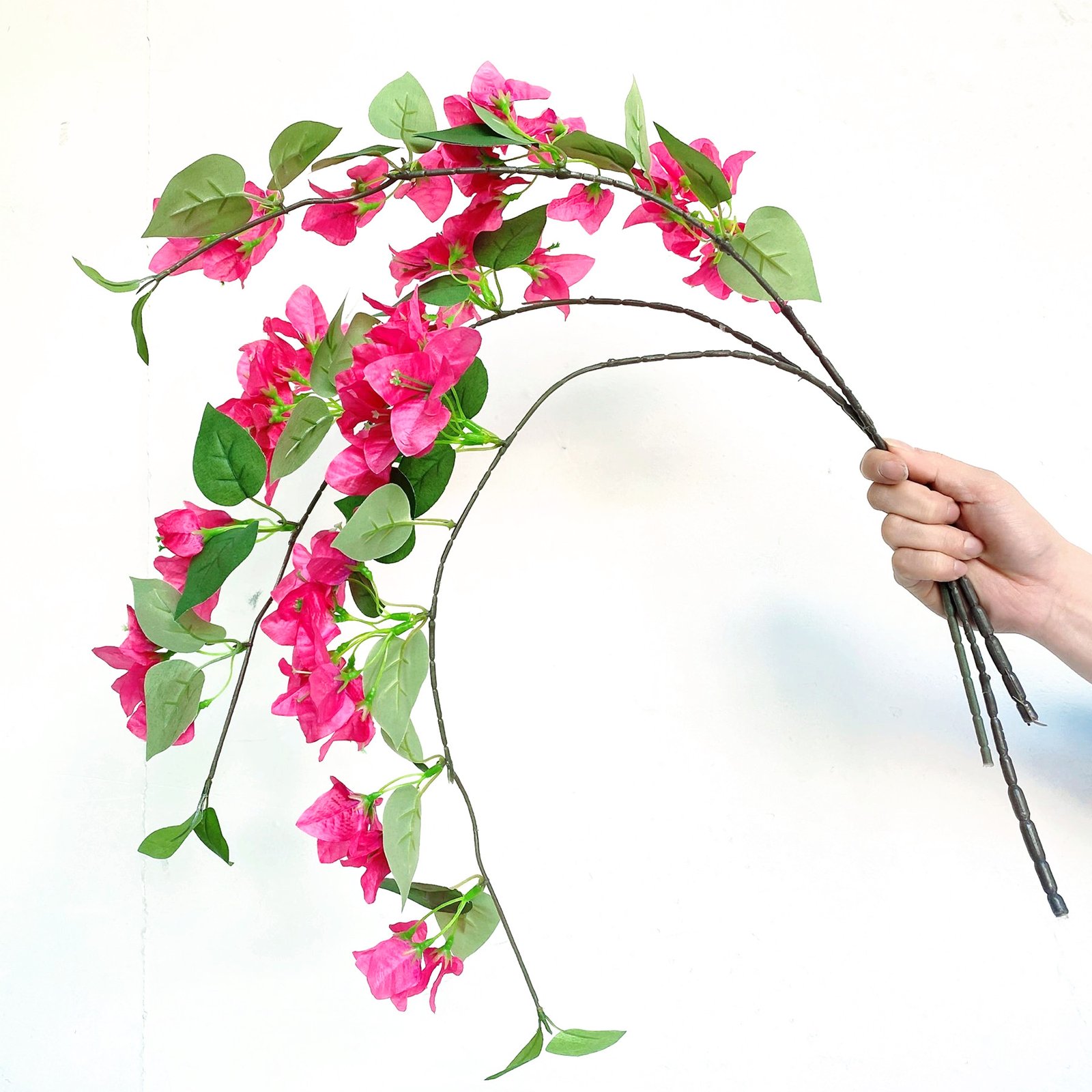 The fuchsia silk bougainvillea stem can complement a range of interior styles. Whether used in a vase, as part of a floral arrangement, or even as a standalone piece, it brings a touch of elegance and sophistication to your space. The vibrant shade works beautifully against neutral backgrounds or mixed with other colorful decor.