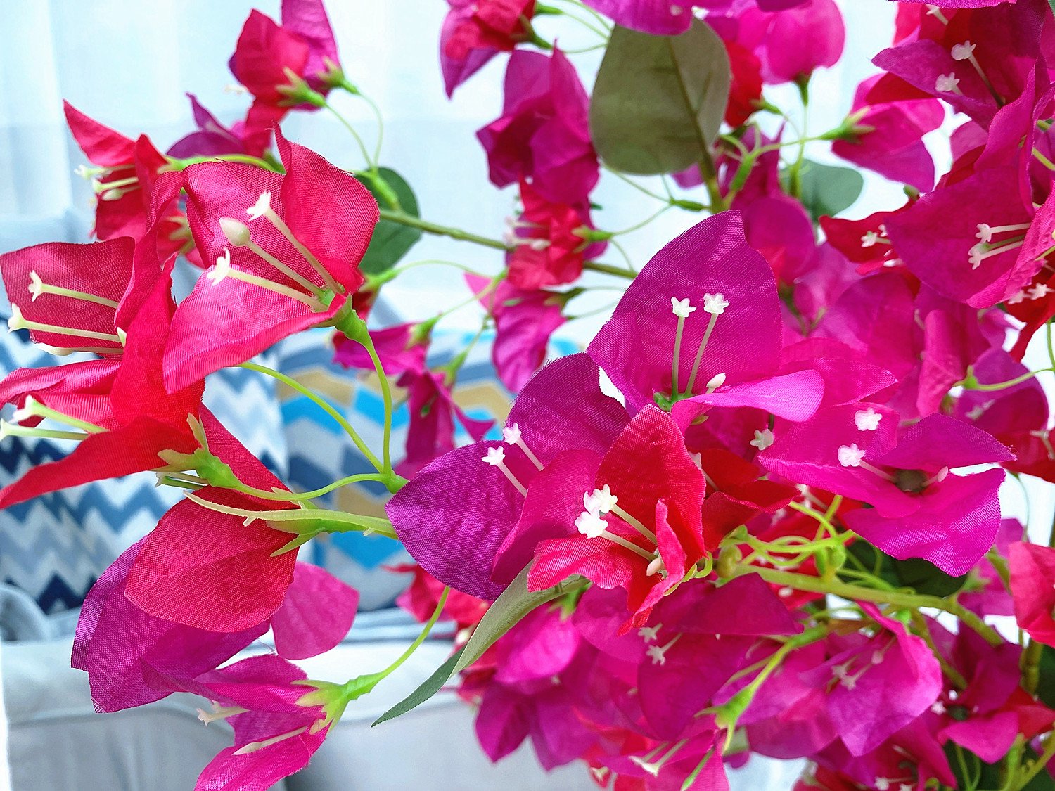 - Unique design: This Silk Bougainvillea Branches have full color and rich arrangement. The petals are thin and with bright color. We follow the beauty of the natural form of flowers, each petals is naturally curled.