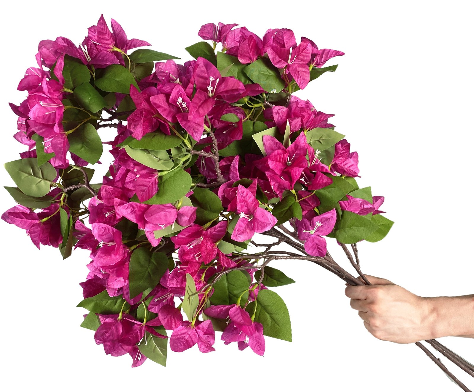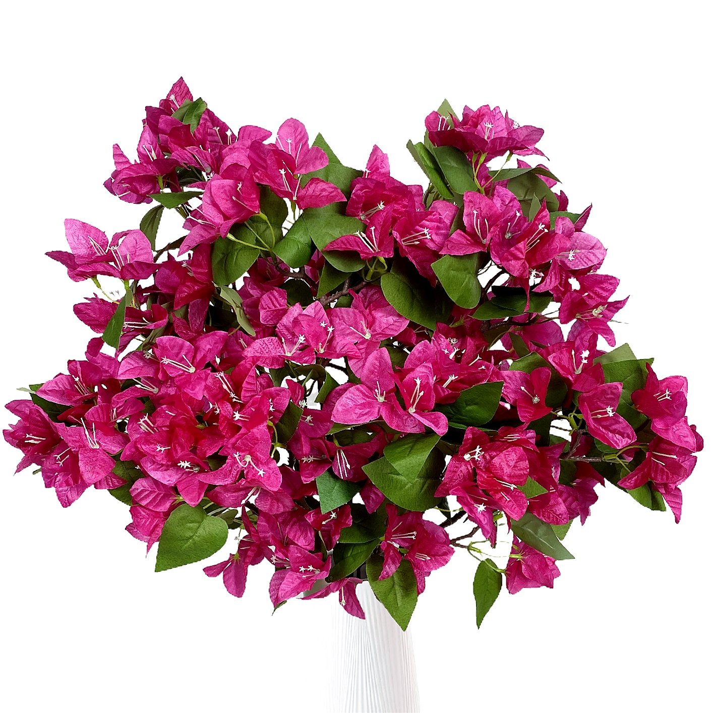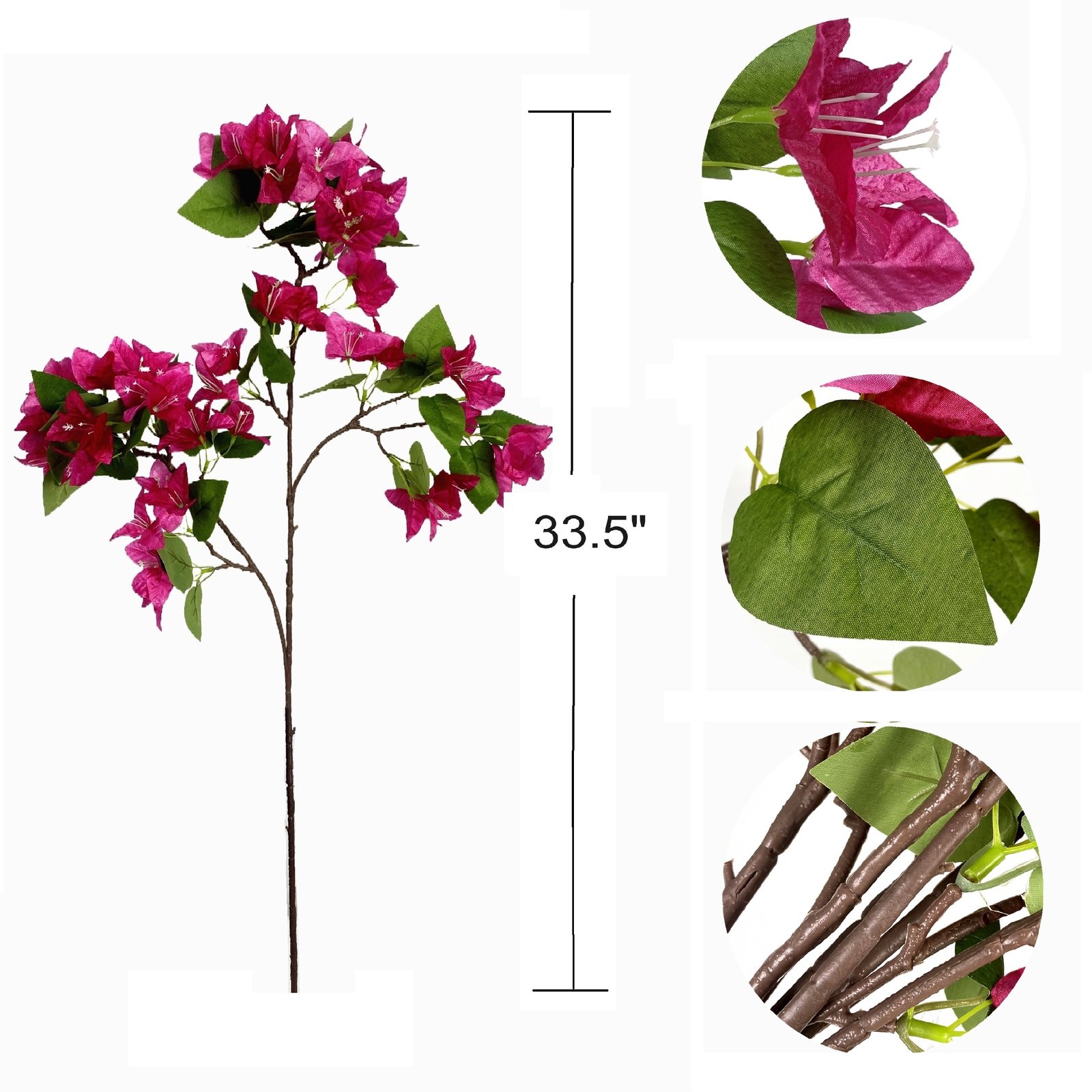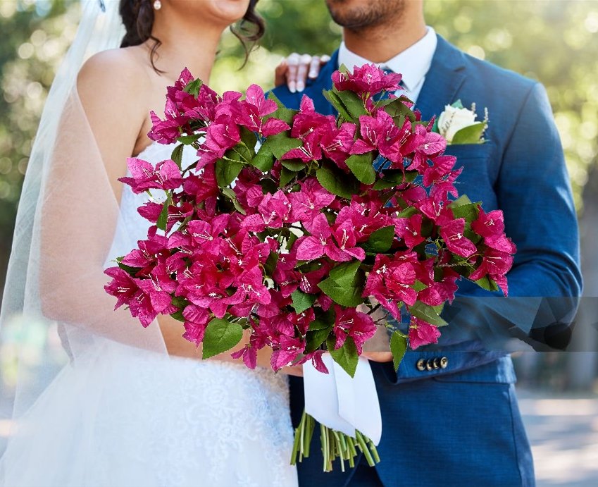 The fuchsia silk bougainvillea stem can complement a range of interior styles. Whether used in a vase, as part of a floral arrangement, or even as a standalone piece, it brings a touch of elegance and sophistication to your space. The vibrant shade works beautifully against neutral backgrounds or mixed with other colorful decor.