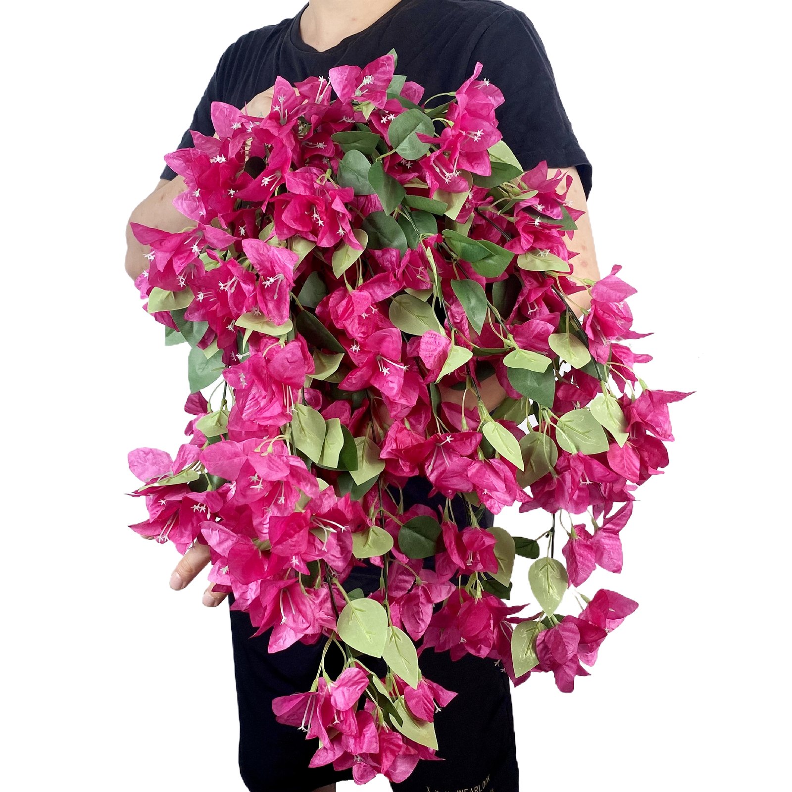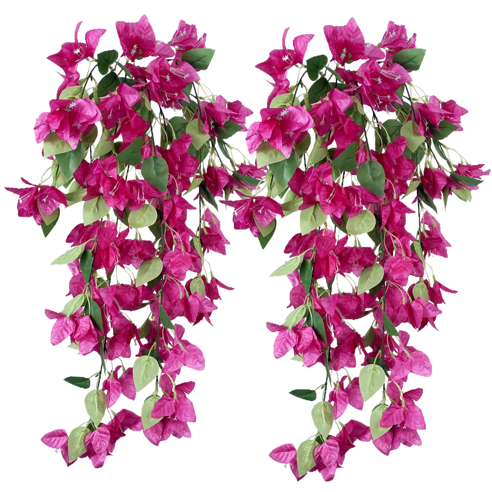 • Size & Package: Artificial hanging flower total length measures about 29 inches. The Bougainvillea hanging vines have 5 branches and 72 flowers + 48 green leaves.